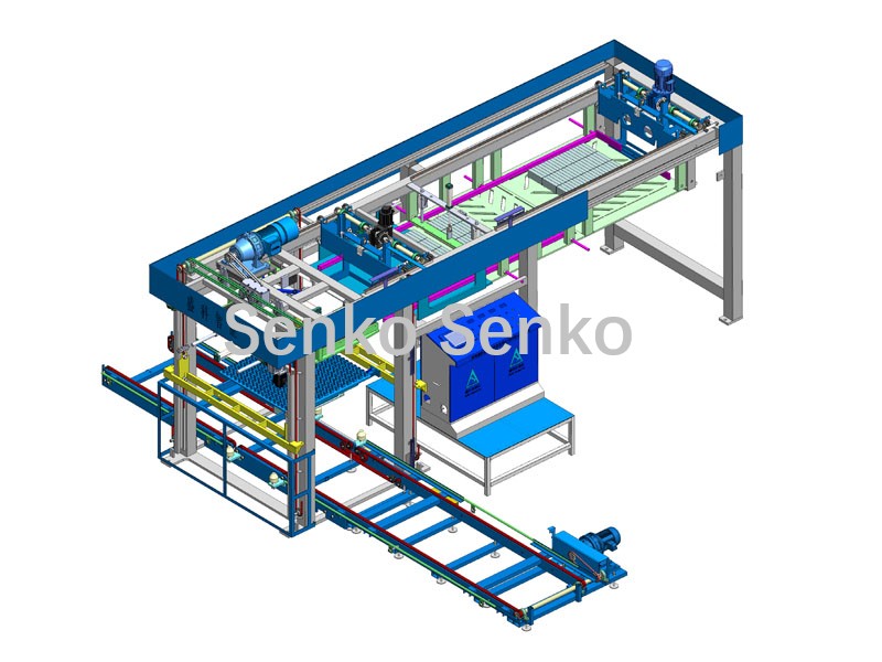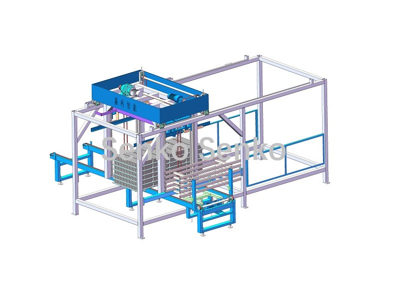 تتكون الآلة بالكامل من منصة نقالة مزودة برافعة للطوب/البلوك المُعالج، ووحدة تكديس رئيسية، وآلة دفع/قلب المنصات، ووحدة تكديس، وغيرها، لتحقيق منصة نقالة لا قاع لها لتكديس الطوب. تعمل الآلة بمحركات مؤازرة وقوة هوائية، بينما يعمل المحرك الكهربائي بتردد متغير، مما يتميز بالذكاء والثبات والسرعة وانخفاض استهلاك الطاقة والمساحة الصغيرة. يتميز خط إنتاج المعدات هذا بدرجة عالية من الأتمتة الشاملة، ويتم التحكم في العملية بأكملها بواسطة خزانة حاسوبية، مما يقلل من تكاليف العمالة ويحسن الكفاءة والإنتاجية.