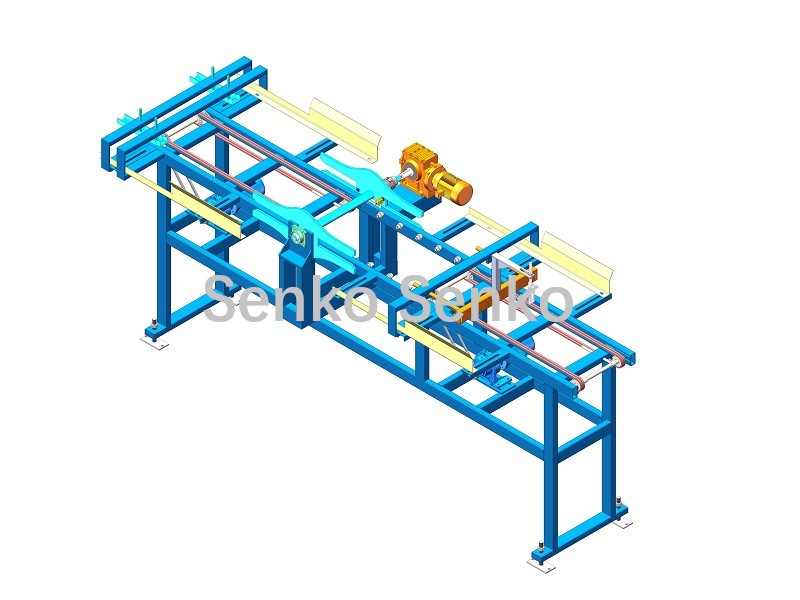 بعد فصل الطوب، تُنقل المنصة الفارغة للأمام بواسطة سلسلة. يمكن ضبط آلية قلب على ناقل السلسلة لقلب المنصة الفارغة، ثم تُدفع المنصة الفارغة إلى آلة التكديس.