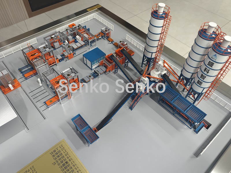 | 1، آلة الدفعات | 2، ناقل المواد الأساسية | 3، خلاط | 4- صومعة الأسمنت | 5، ناقل حلزوني | 6، آلة التشكيل |